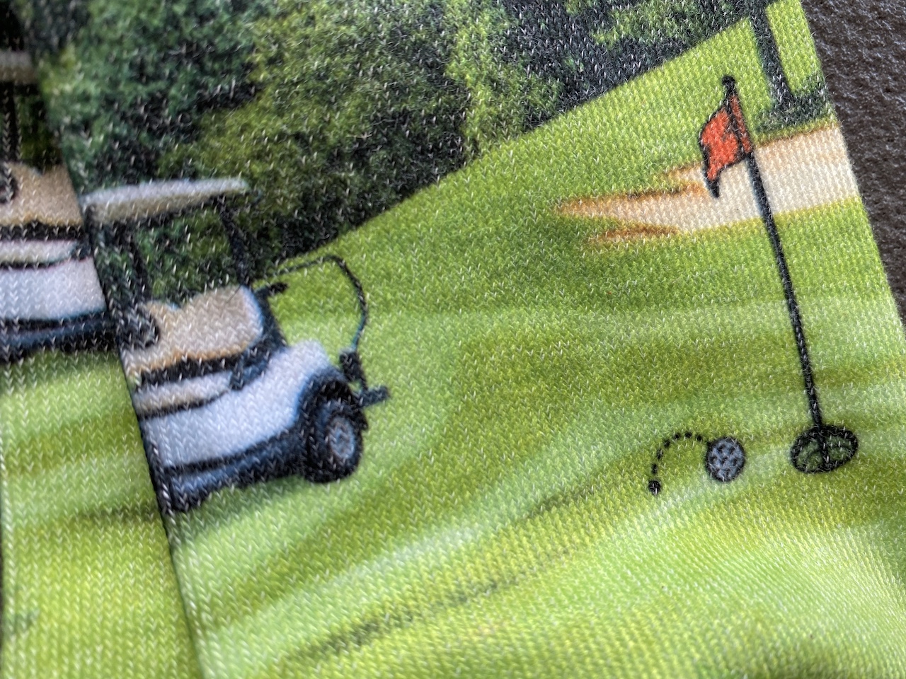 Erinnert ihr euch noch an die Motivkrawatten der 90er Jahre? Auf den Krawatten waren bunte Comic- oder Kunstmotive gedruckt. Seit den 2000er Jahren gibt es nun Motivsocken – und meine Frau schenkte mir nun Golfsocken.