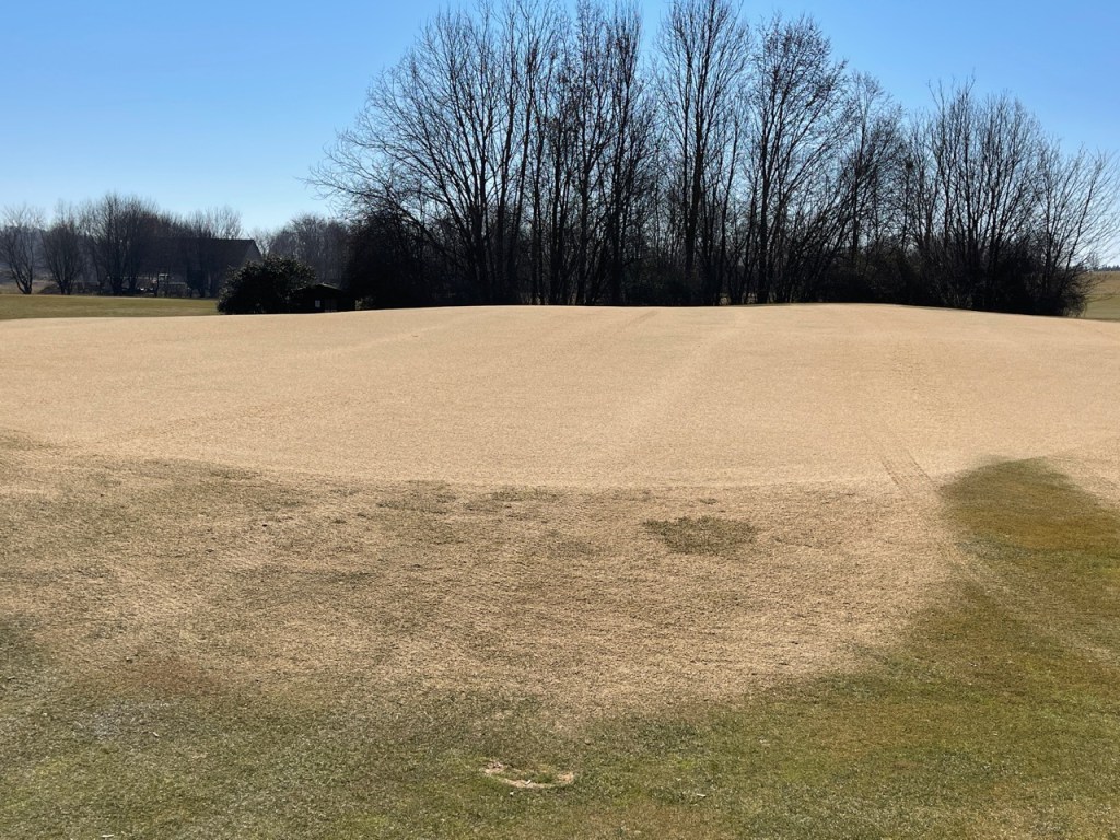Im Moment ist viel Sand auf den Golfplätzen zu finden. Ich meine damit nicht den Sahara-Sand der vergangenen Tage und nicht den üblichen Sand in den Bunkern, sondern die fleißigen Greenkeepr sanden beträchtlich auf dem Grün.